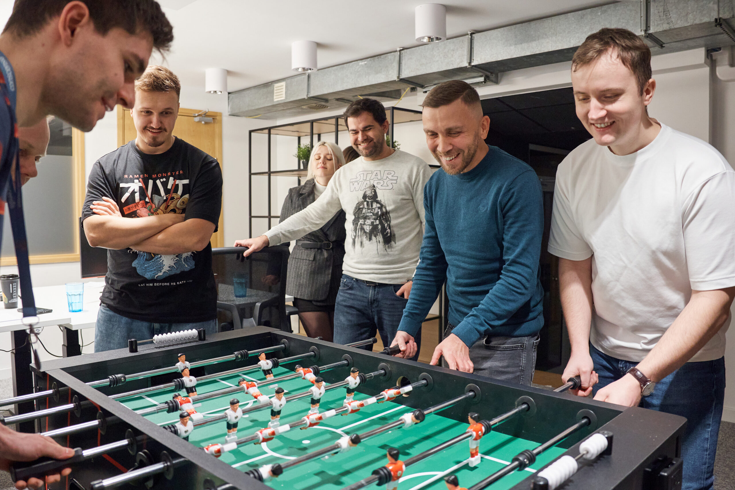 Located in the heart of the business district and easily accessible via two metro stations, our office is designed to encourage collaboration, innovation, and productivity. We operate in a hybrid work model, with three days in the office and two remote, offering the perfect balance between teamwork and flexibility.